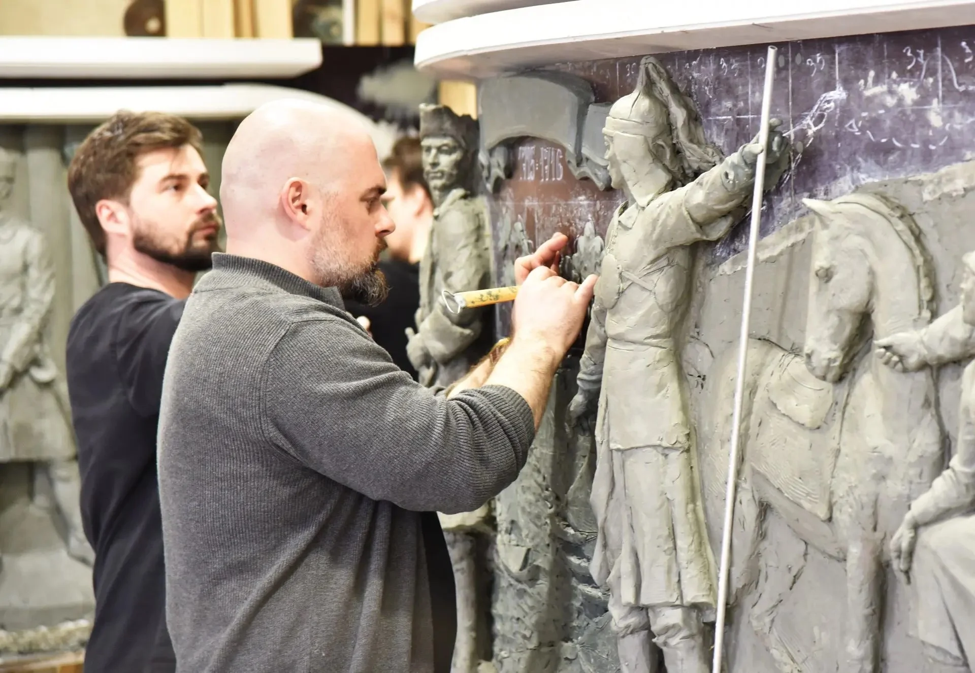 Омский скульптор Михаил Минин создает сейчас прототип будущих барельефов, которые украсят обновленный шар «Держава». Всего разработают 3 барельефа из бронзы.